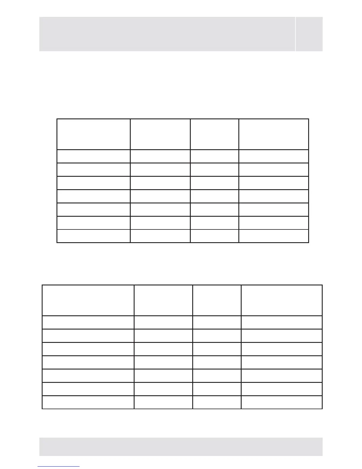 Main oven cooking chart