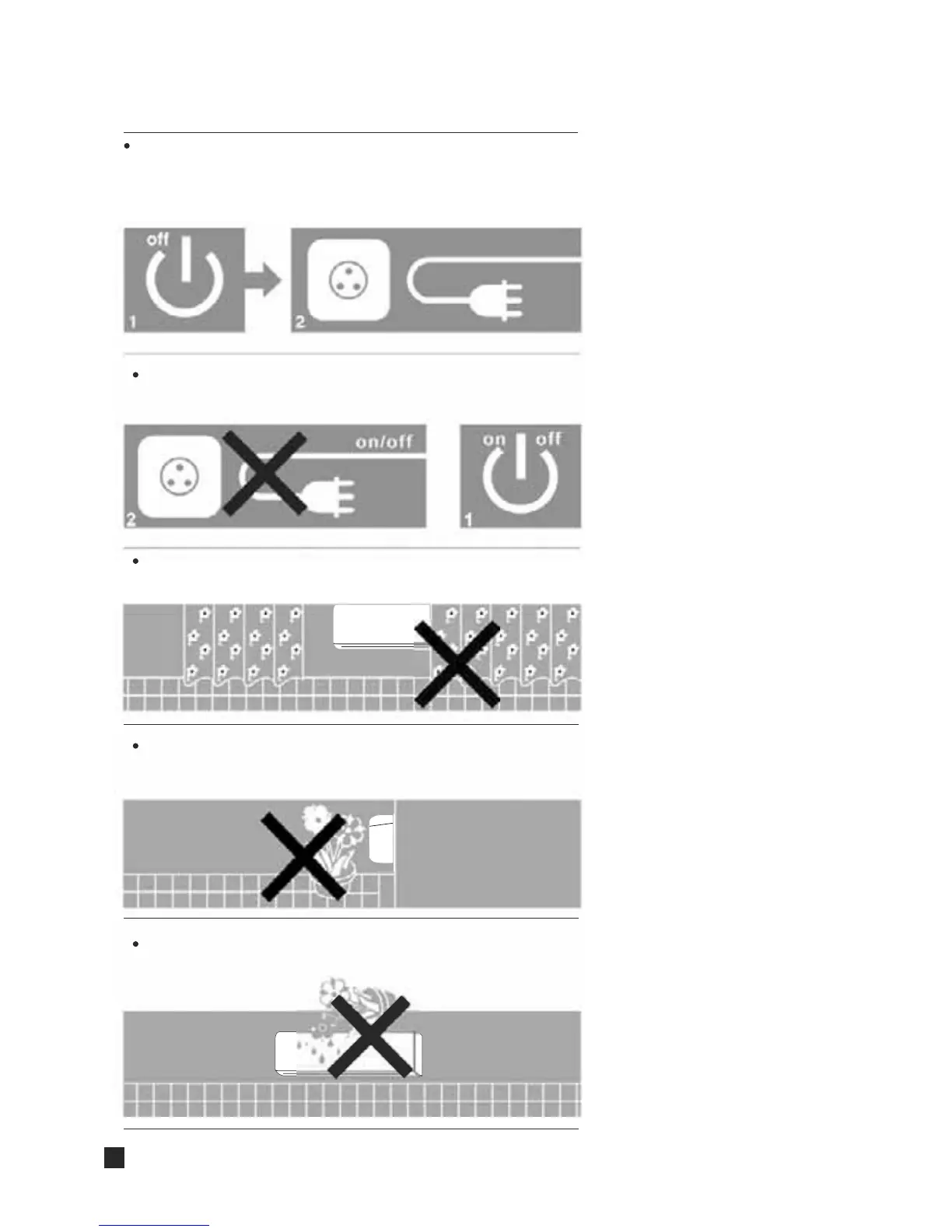 Do not splash water on air conditioner.