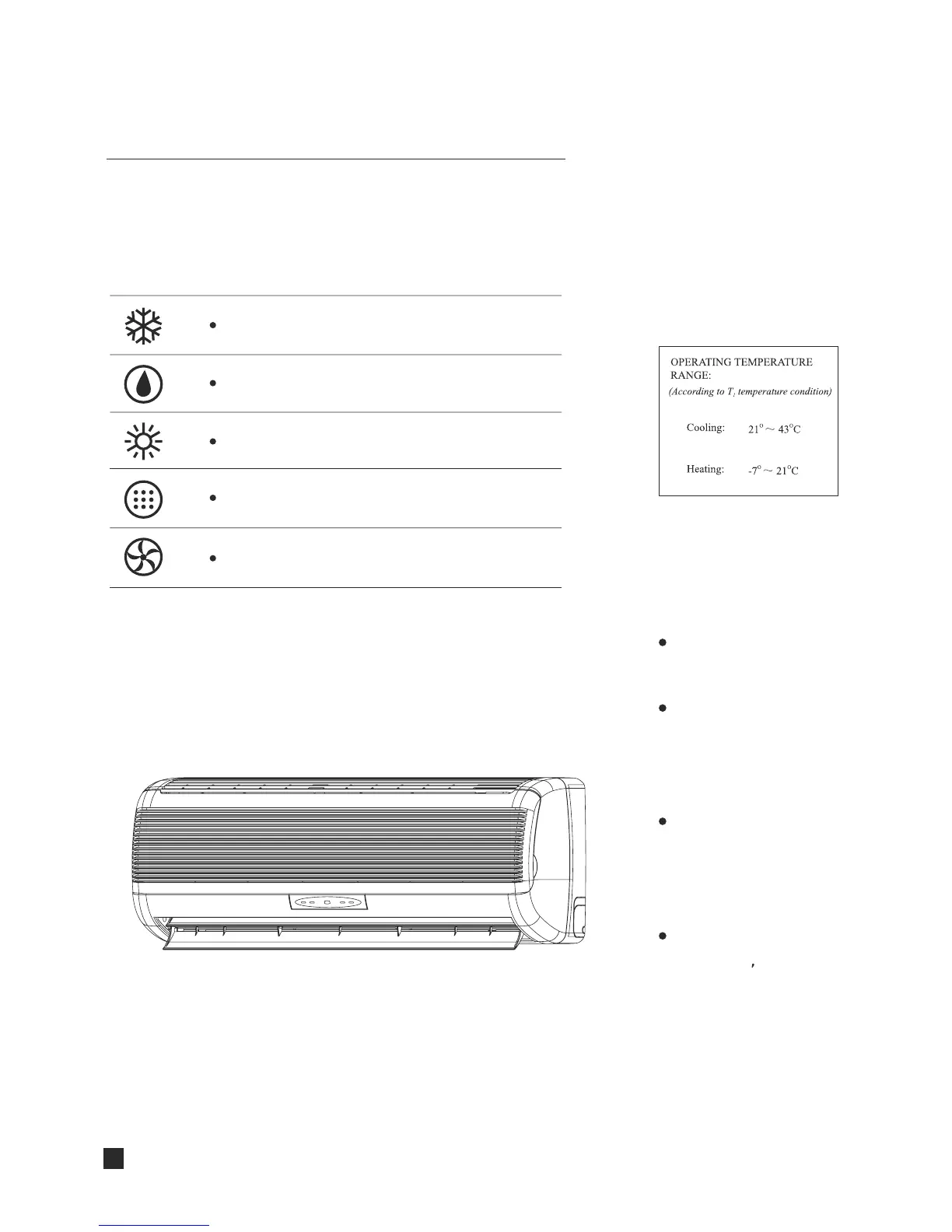 The air conditioner is designed for various uses: