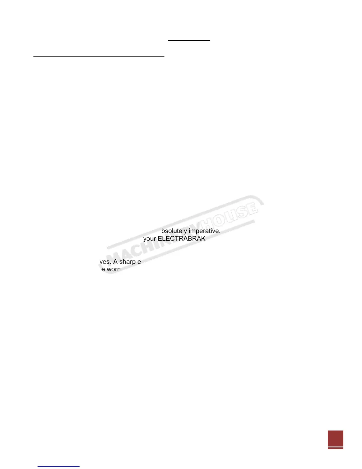 If you cannot operate basic tools, you should not attempt to maintain or repair your ELECTRABRAKE