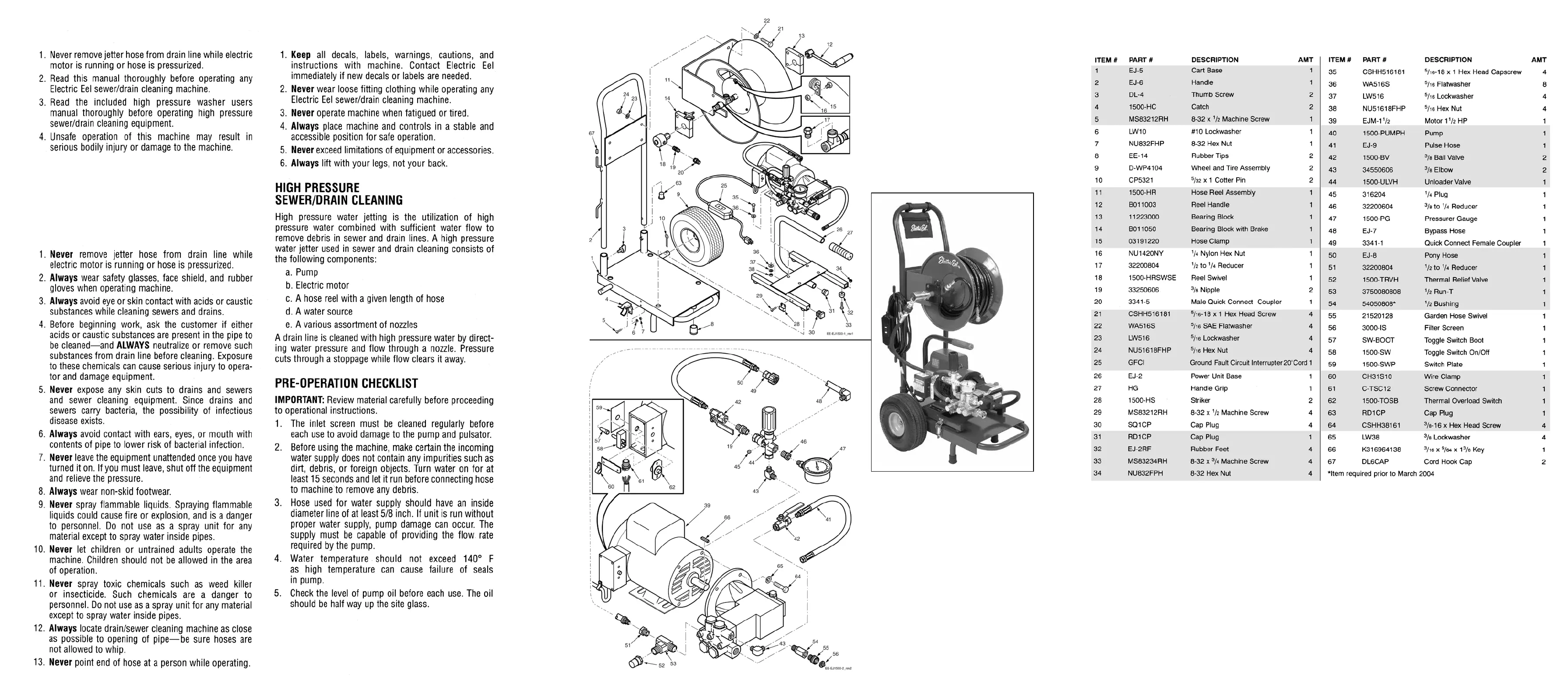 Model EJ1500 Electric Powered Drain Jetter – Applications