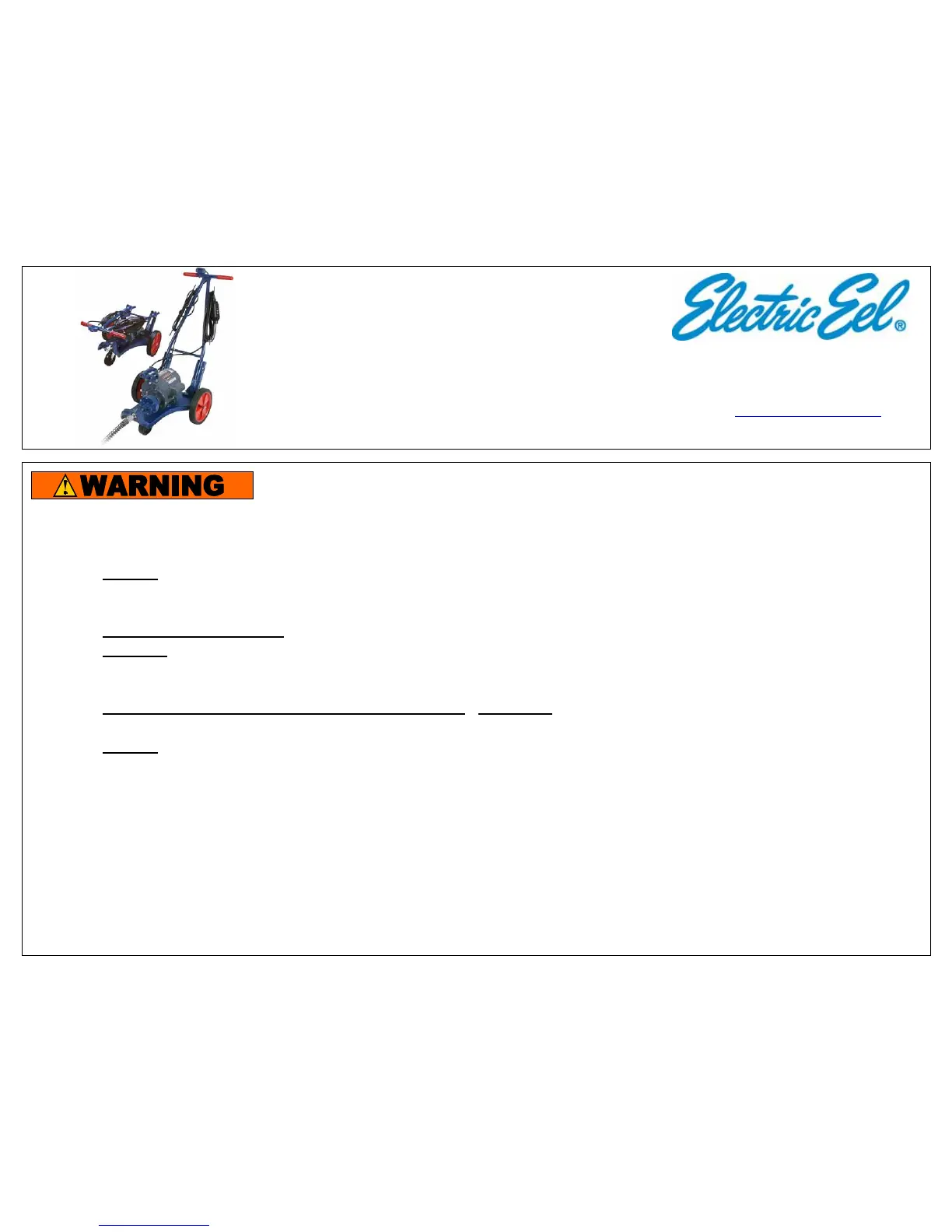 10. To maintain safe operation, USE ONLY identical replacement parts and cables from Electric Eel.