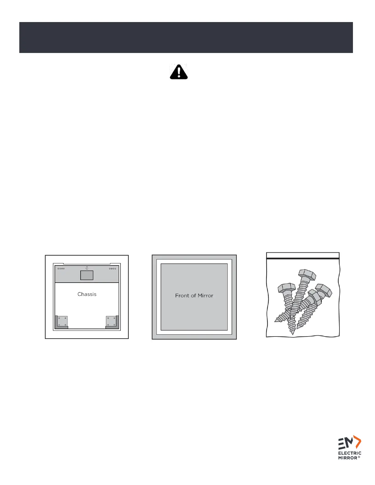 Unpack the boxes, and identify and verify all contents prior to installation. In general, your mirror will include the