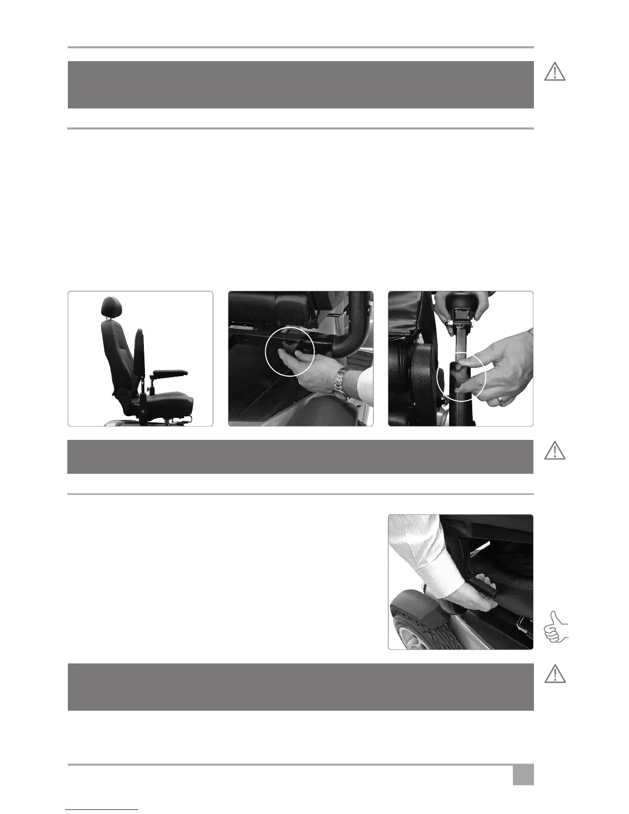 1. Sitting very gently against the back rest and pulling the lever (see