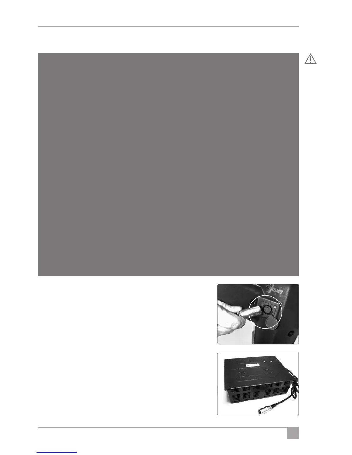 Warning! Never use a different battery charger to that supplied by your dealer. Damage or injury may