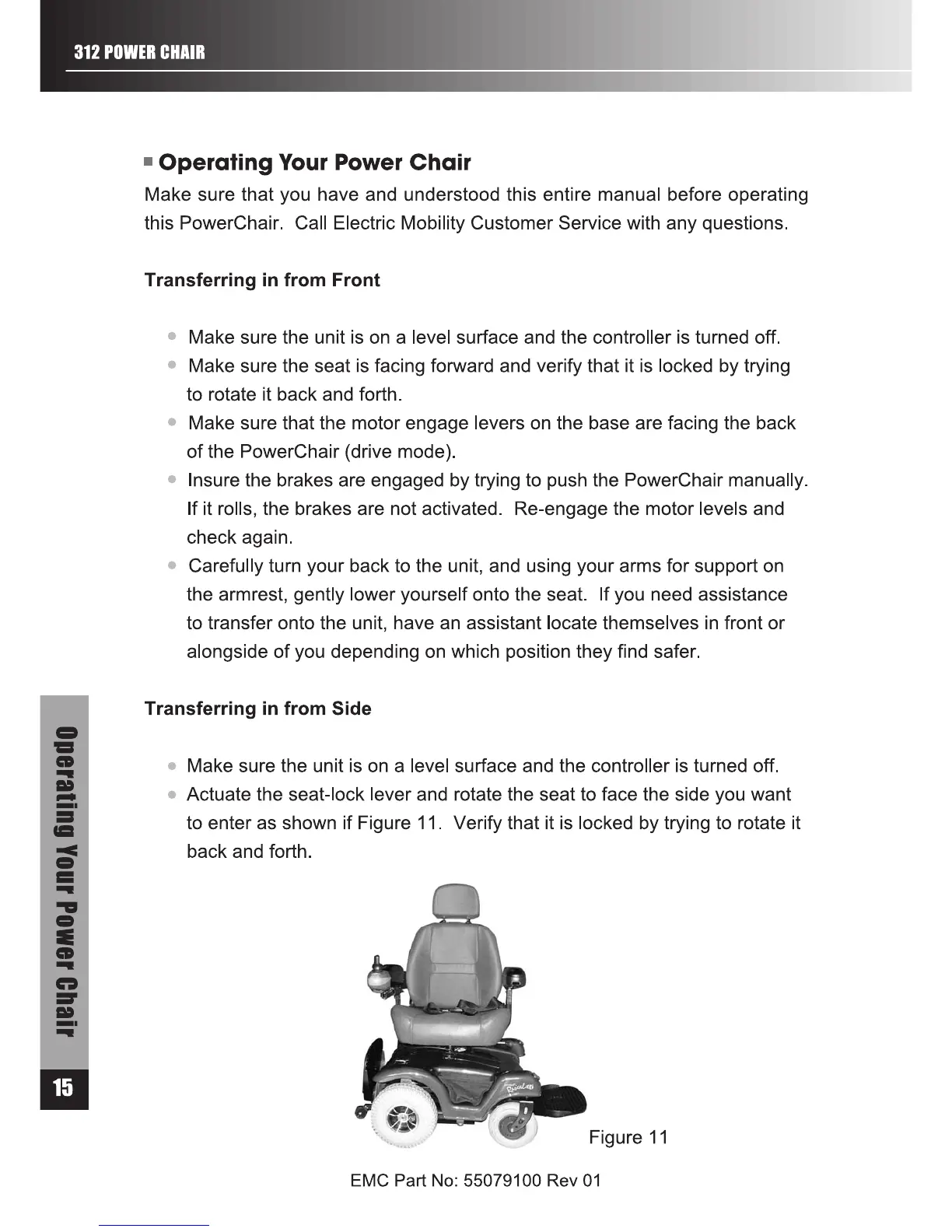 Electric Mobility Rascal 312 - Operating Your Power Chair; Transferring On;Off the Power Chair