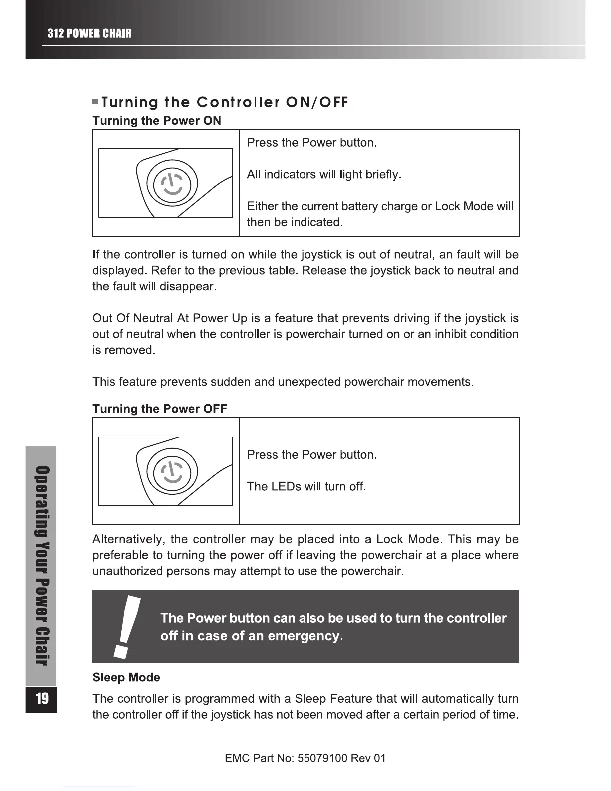Electric Mobility Rascal 312 - Turning Controller On and Off