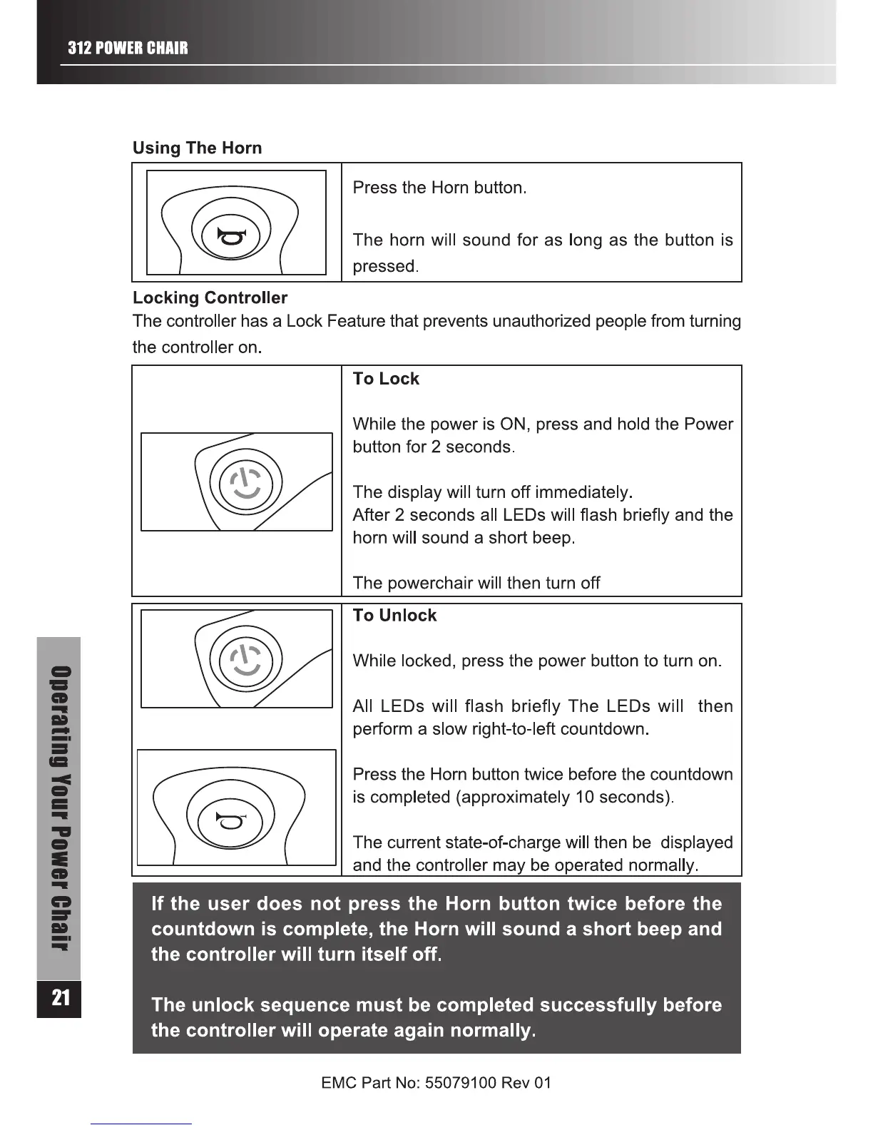 Electric Mobility Rascal 312 - Using the Horn and Locking Controller