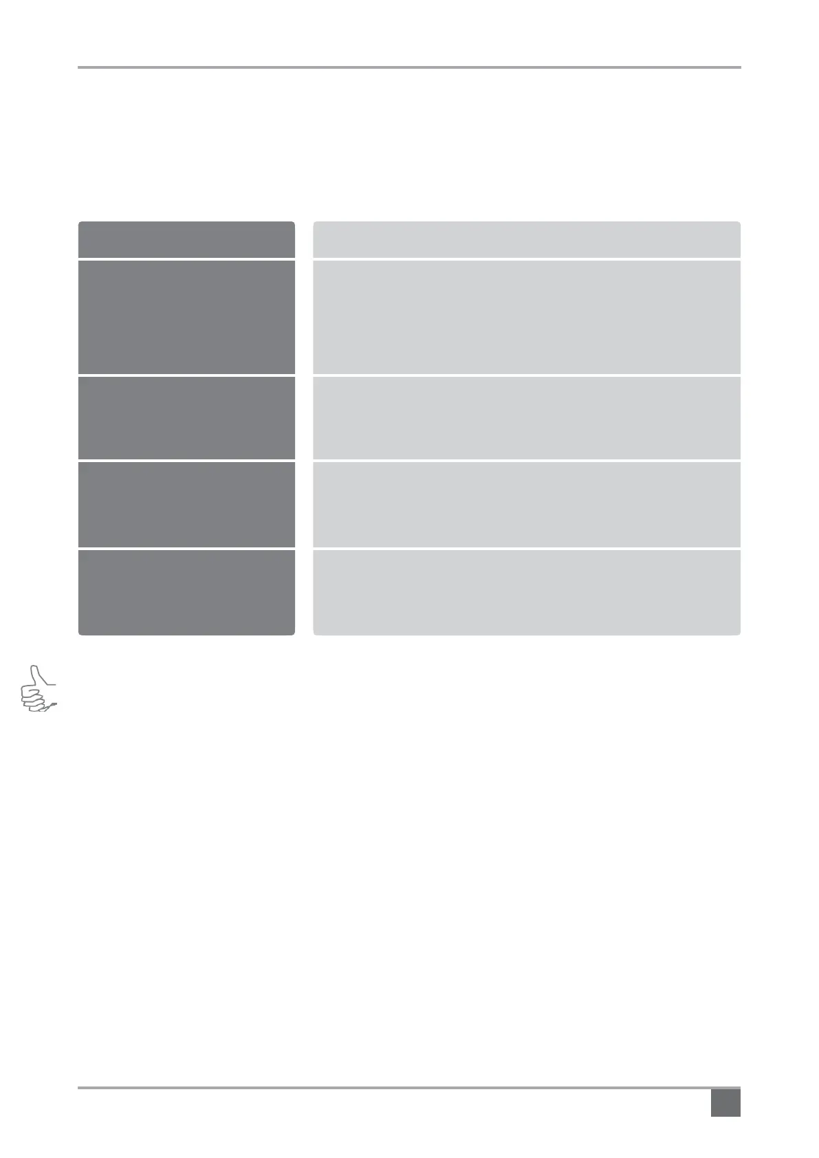 This table is a guide to fault finding. The fault may be a simple fix. If you have any doubts phone the dealer.