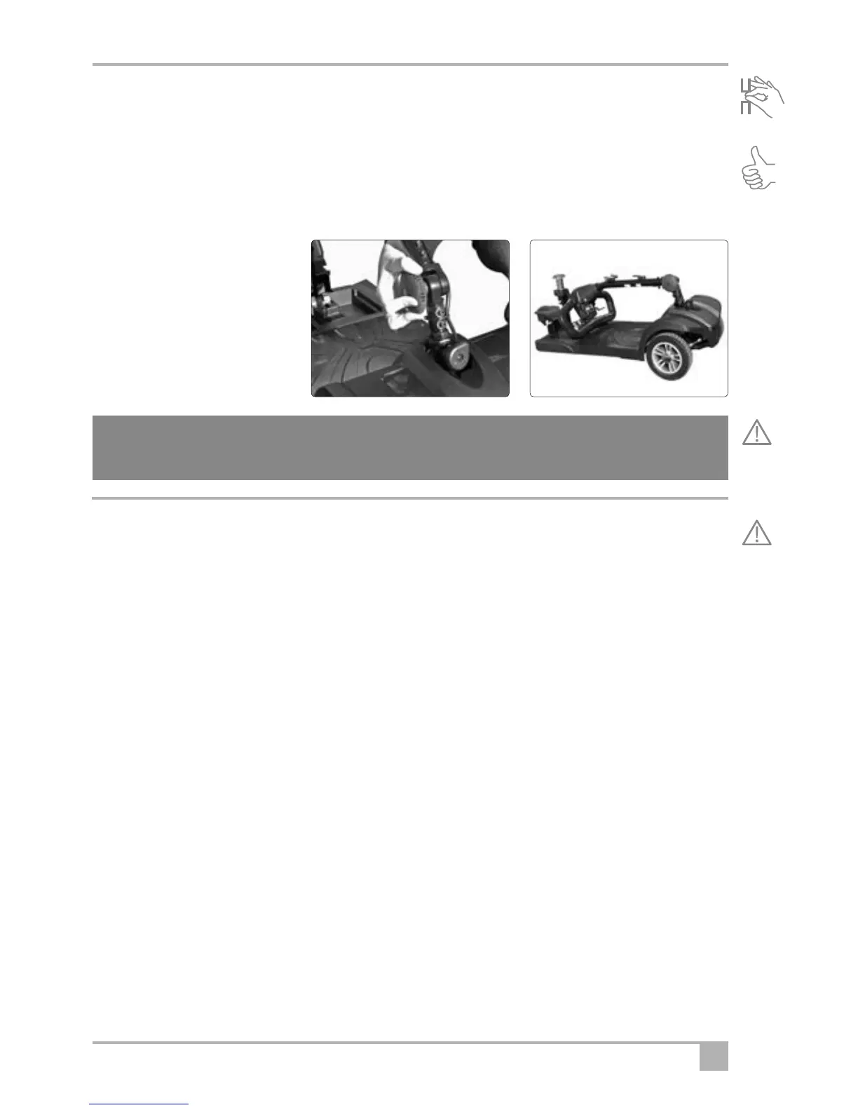 • Ensure that the handlebar / tiller adjustment is fully tightened and that any accessories are properly