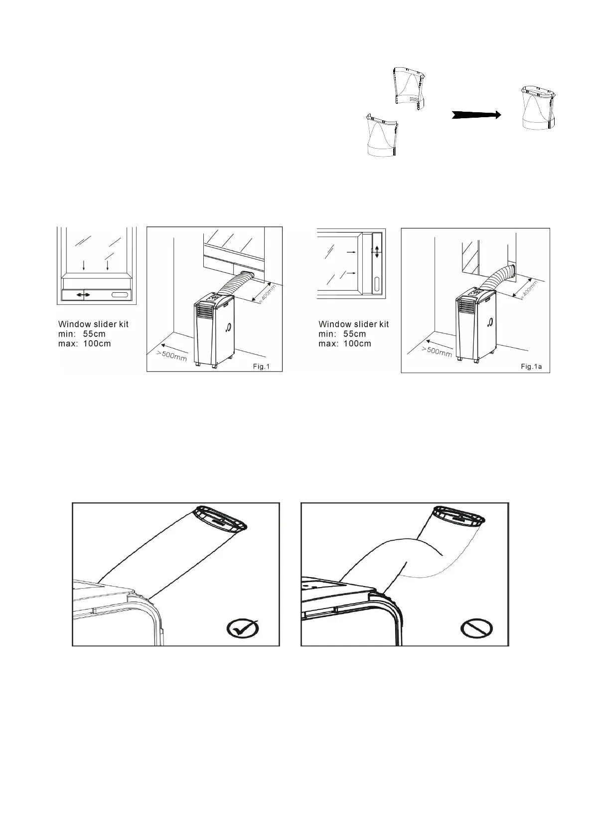 Clip the other end of the hose with the fishtail adapter to the air outlet of the window slider.