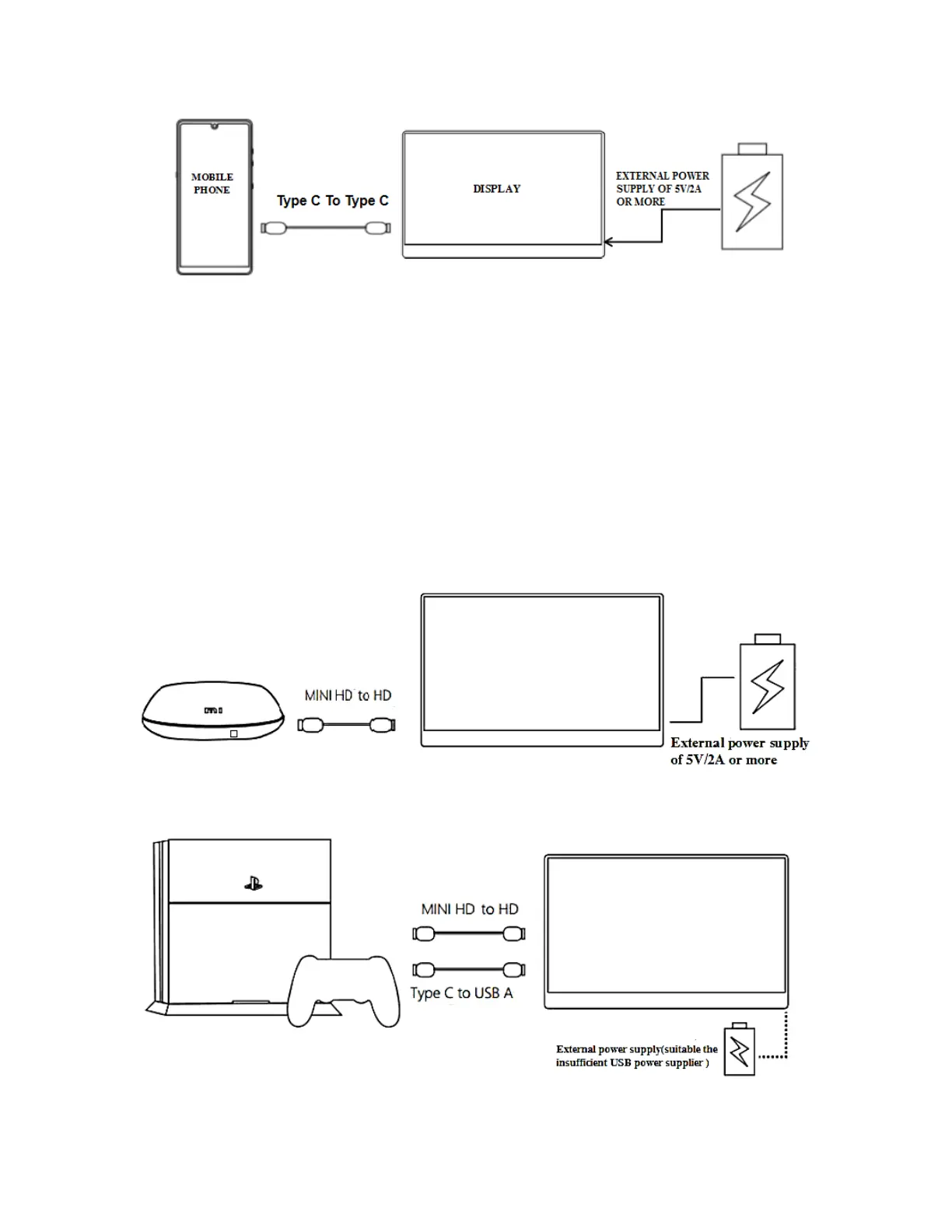 display will provide power to the mobile phone through the external power supply. (To