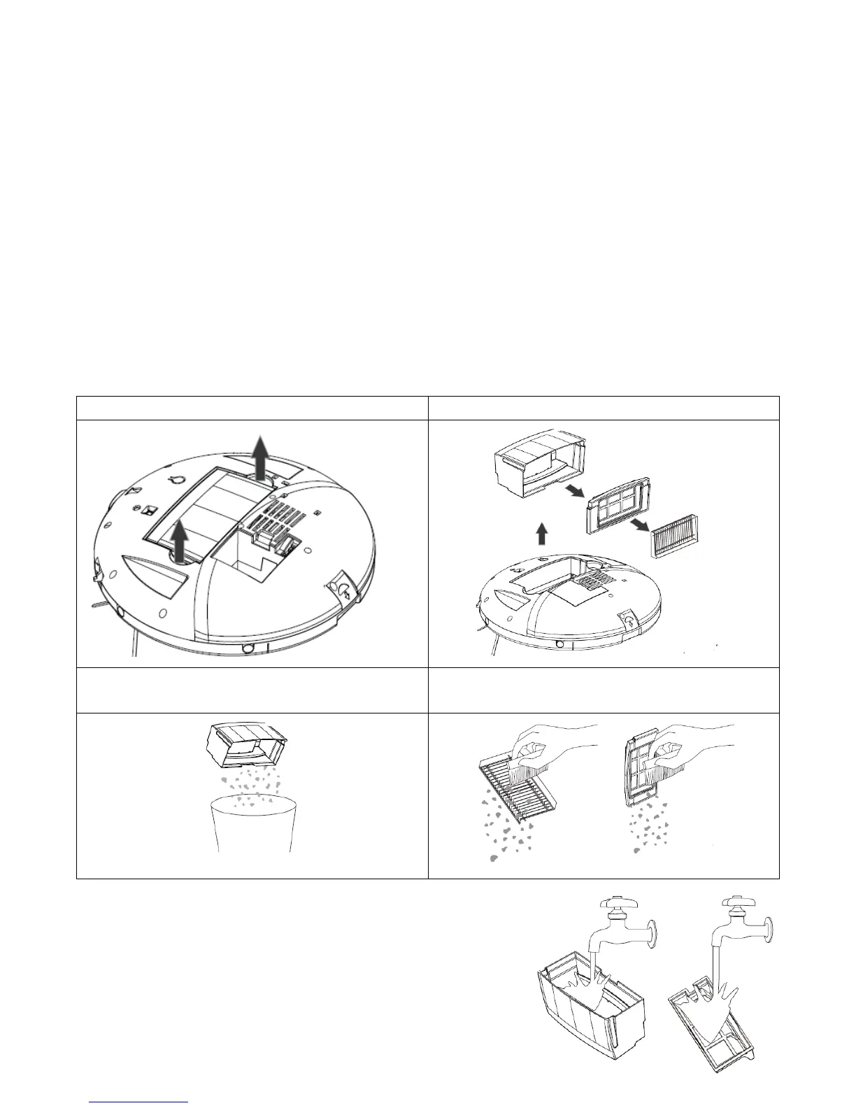 3. Clean all the brushes and empty the rubbish container. Vacuum or wipe the inside of the container
