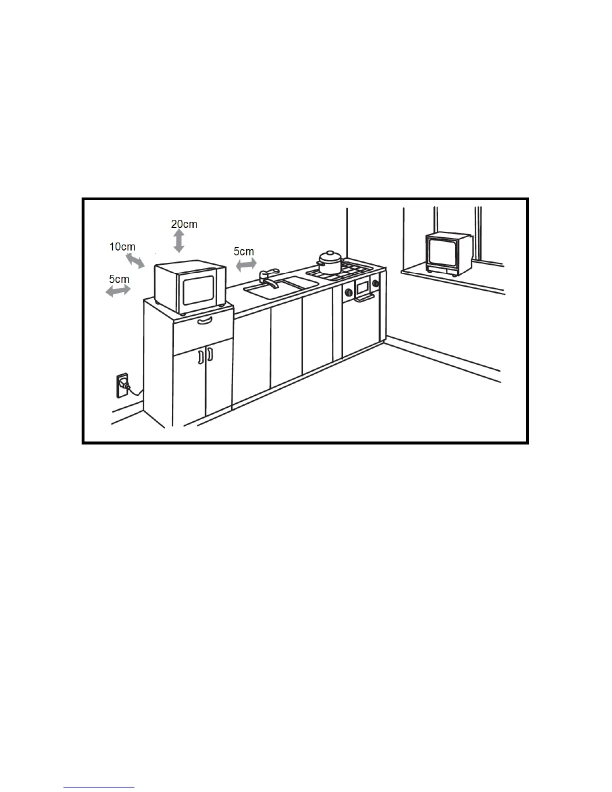 A 10 cm space should be kept between the appliance and the wall behind, a 5cm space
