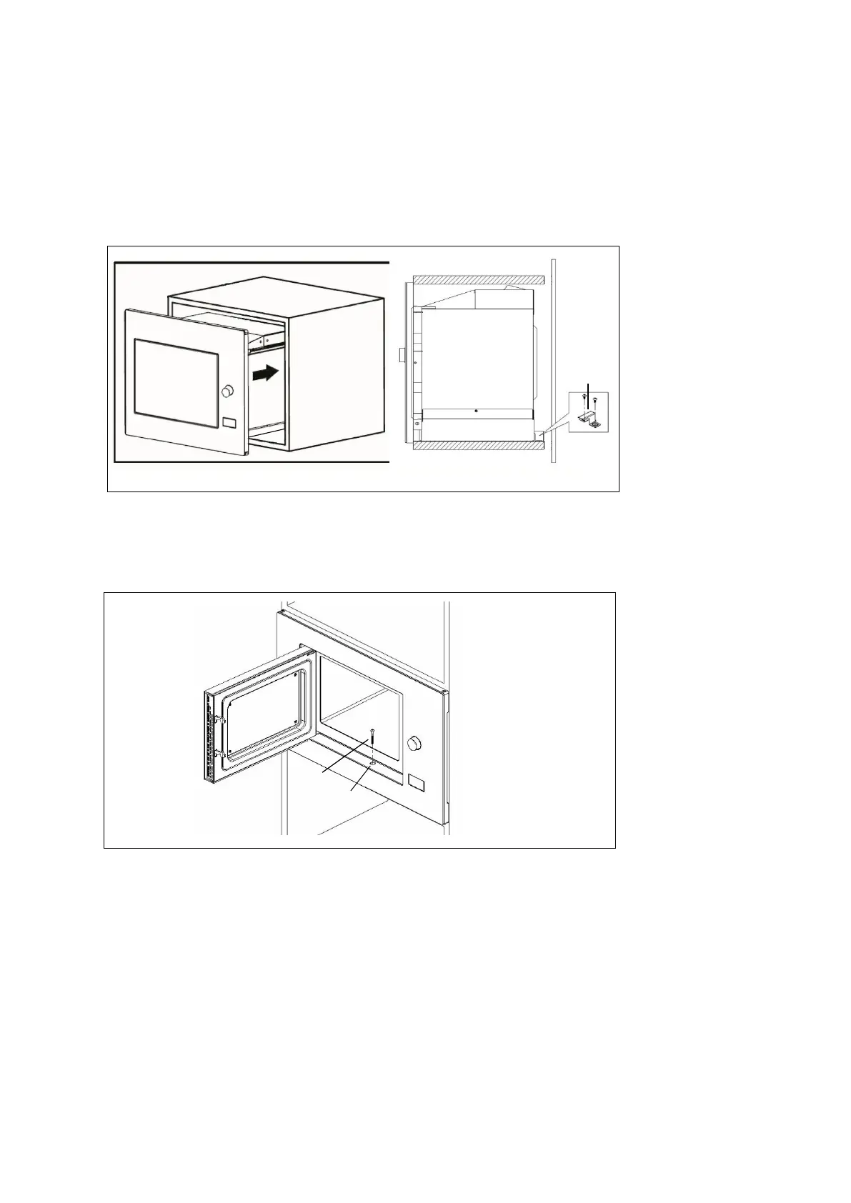 5. Open the door, fix the oven to the cabinet with a screw, through