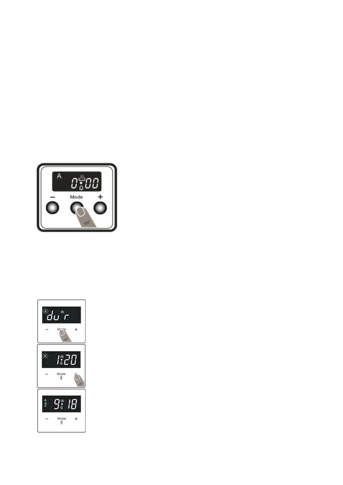 Press “MODE” until you see “dur” and symbol on the display screen. The symbol