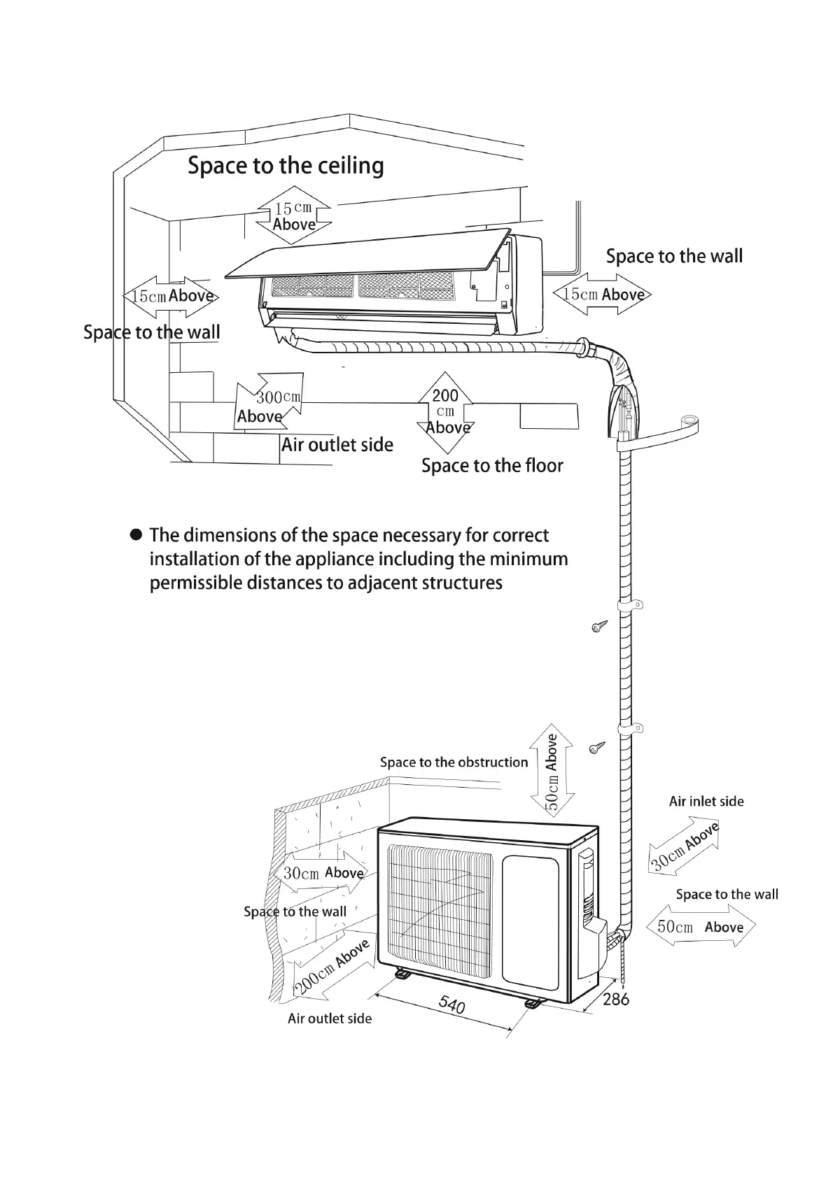ElectrIQ iQool-2MS9K9K - RECOMMENDED INSTALLATION SPACING DIAGRAM