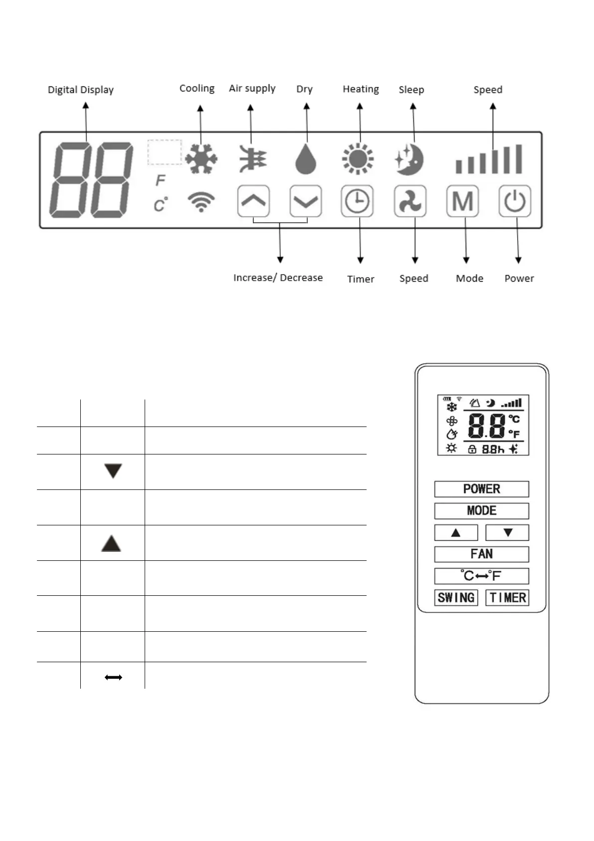 Press to turn the swing function on and off