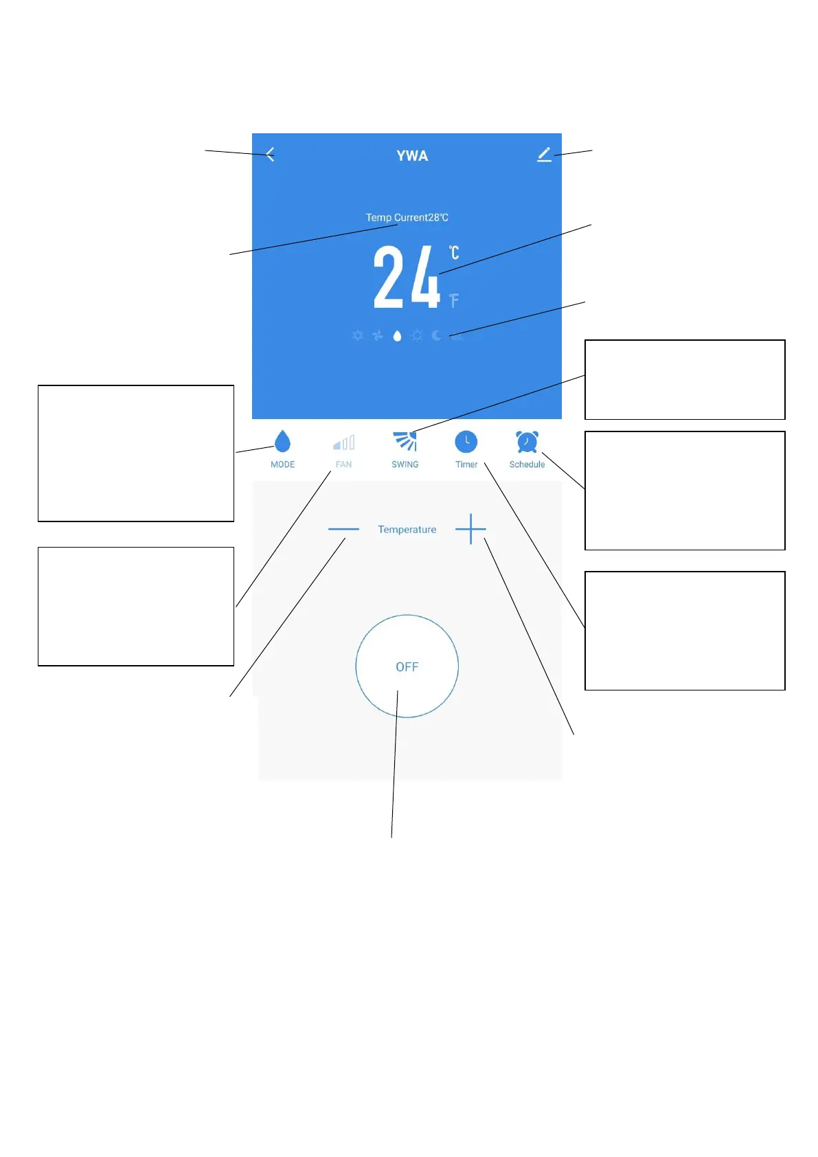 The device screen is the main control screen for the air conditioner, providing access to the controls to