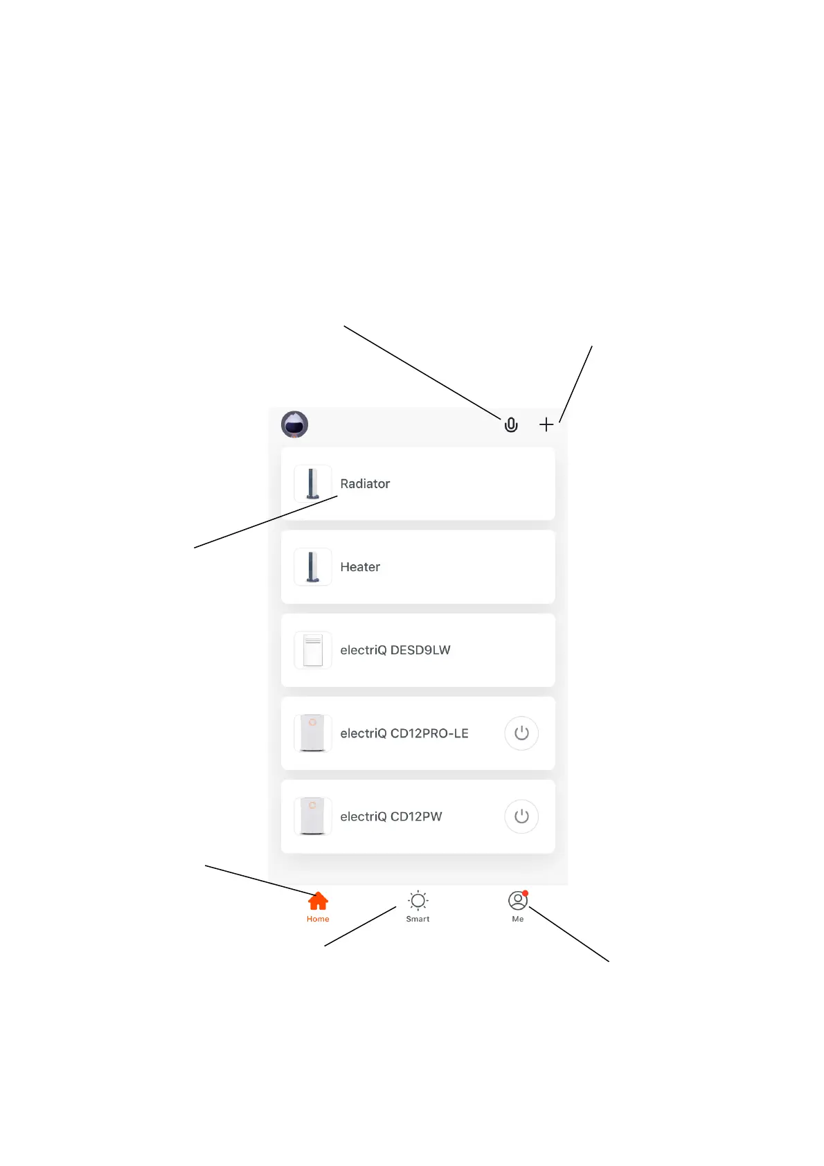 Each device has its own entry on the home screen to allow the user to either quickly turn the unit on or off, or to enter