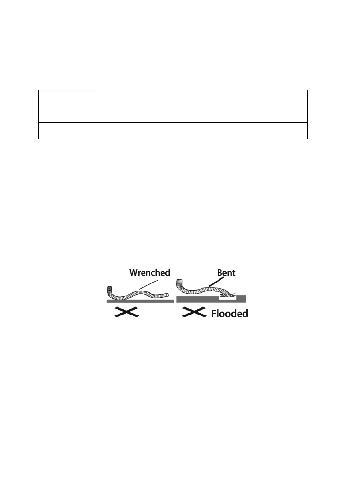 2. Do not pull on or bend the drain hose or flood its end with water.