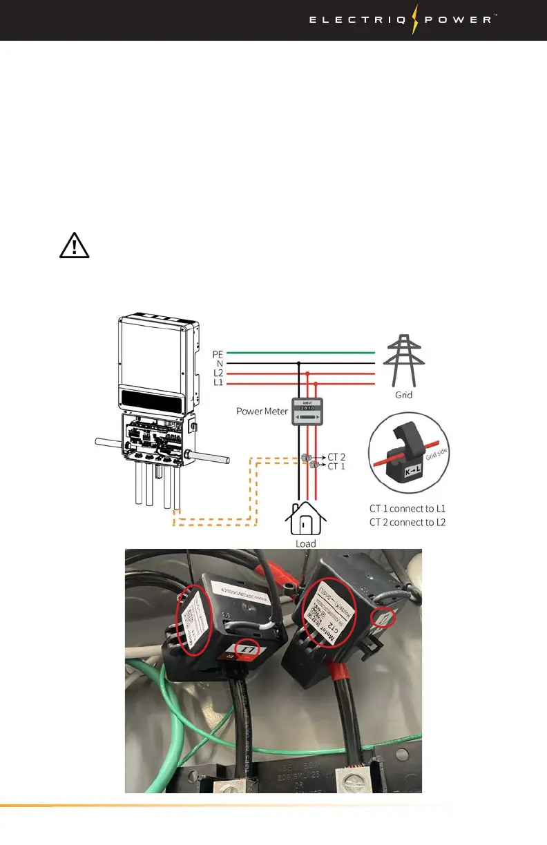 2. The two grid CTs must be connected on the L1 and L2 inputs on