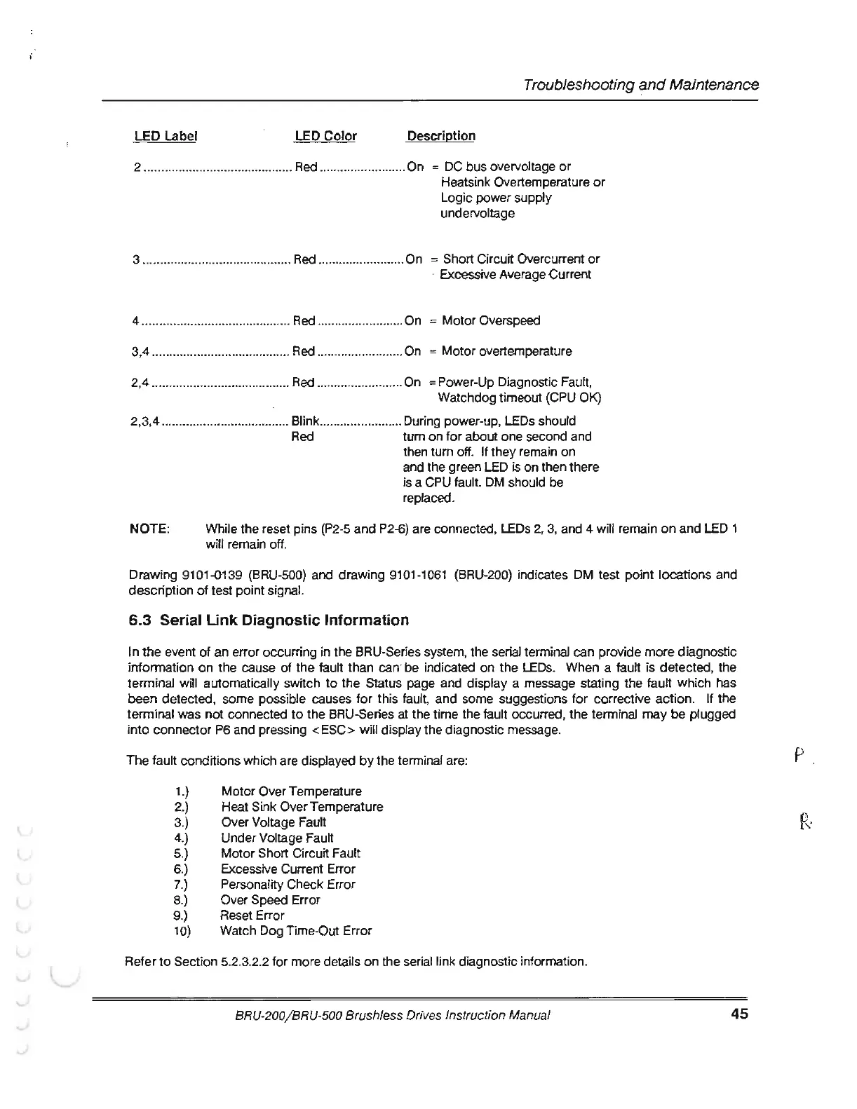 Drawing 9101-0139 (BRU-500) and drawing 9101-1061 (BRU-200) indicates OM test point locations and