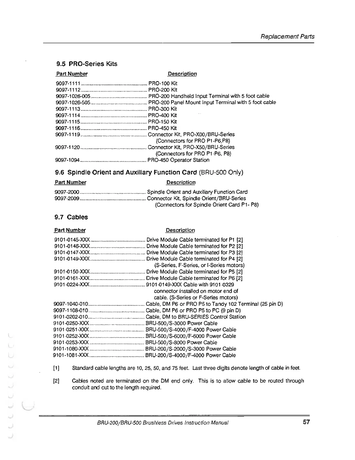 Electro-Craft BRU-200 - 9 Cables; PRO-Series Kits; Spindle Orient and Auxiliary Function Card (BRU-500 Only)