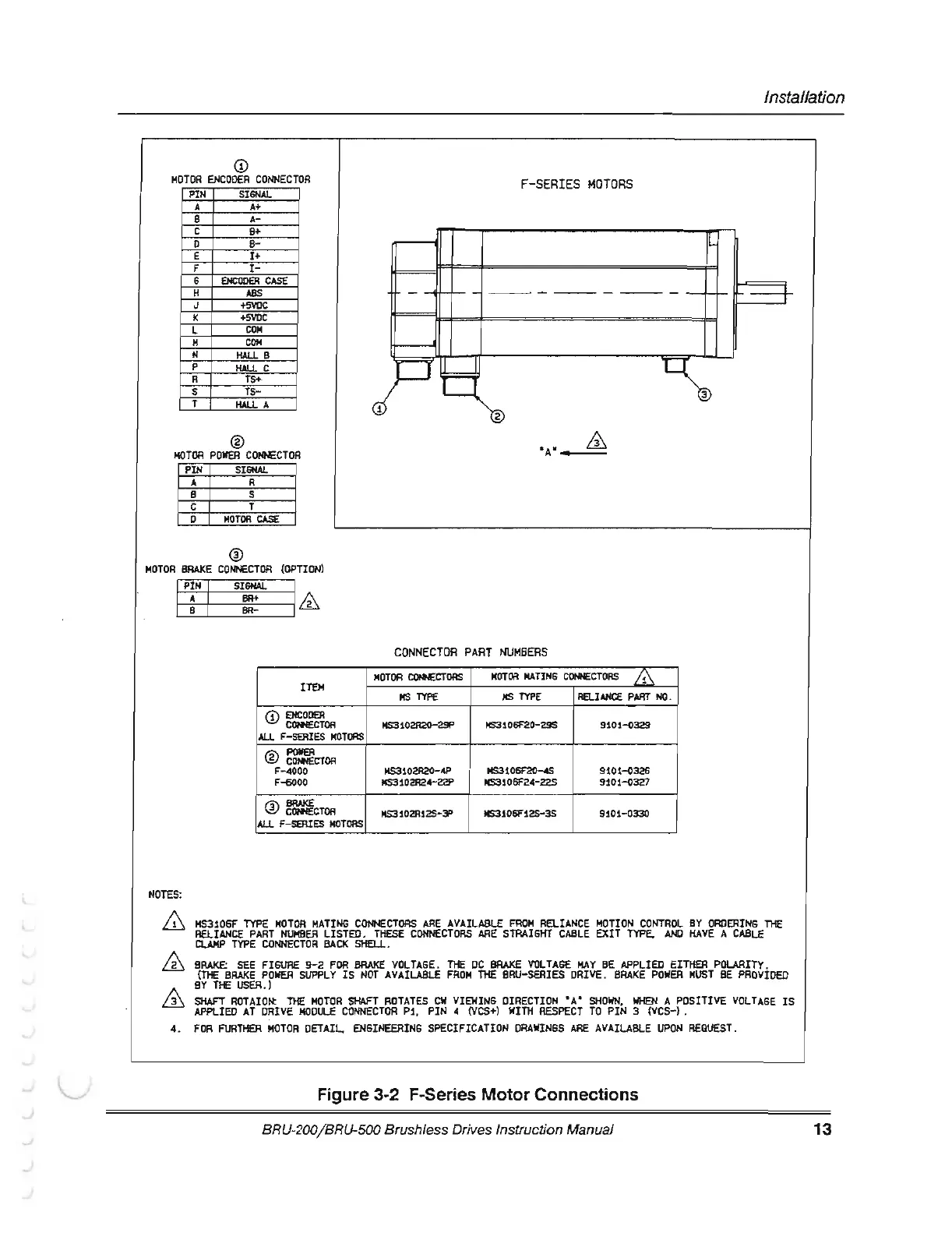 Electro-Craft BRU-500 - Figure 3-2 F-Series Motor Connections