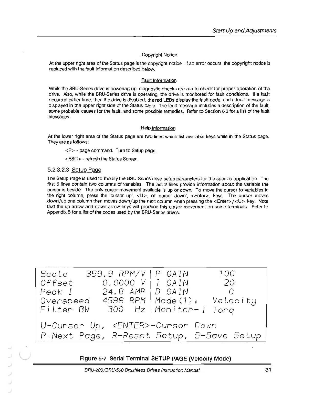 Figure 5-7 Serial Terminal SETUP PAGE (Velocity Mode}