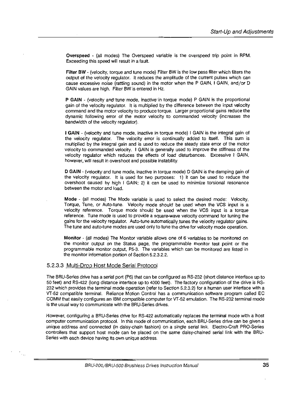 computer communication protocol. In this mode of communication, each BRU-Series drive can be given a