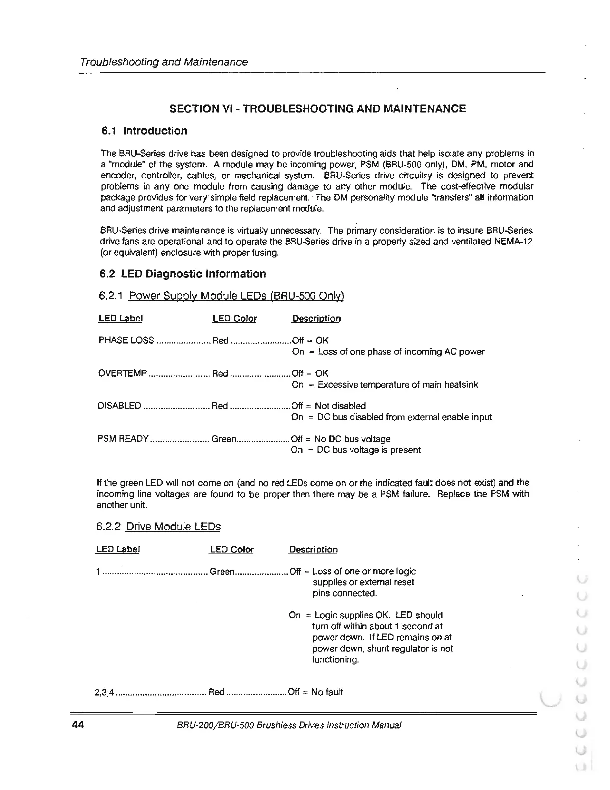 SECTION VI -TROUBLESHOOTING AND MAINTENANCE