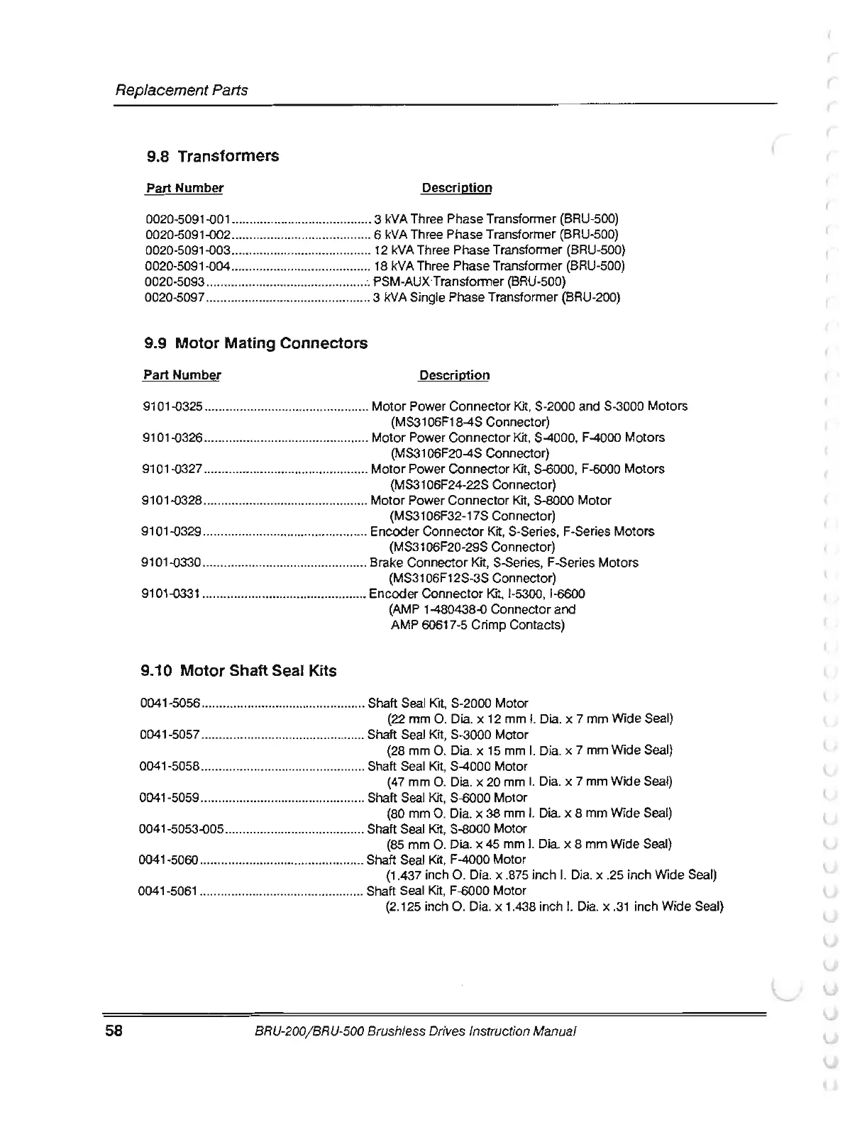 0041-5053-o05 ........................................ Shaft Seal Kit, S-8000