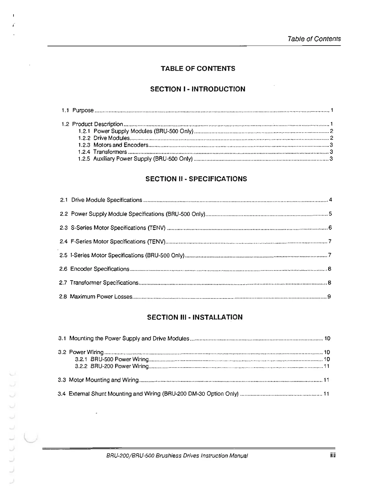 2.5 1-Series Motor Specifications (BRU-500 Only) ..............................