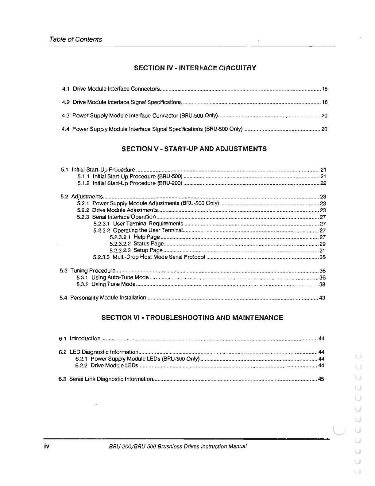 4.4 Power Supply Module Interface Signal Specifications (BRU-500 Only) ...................................................