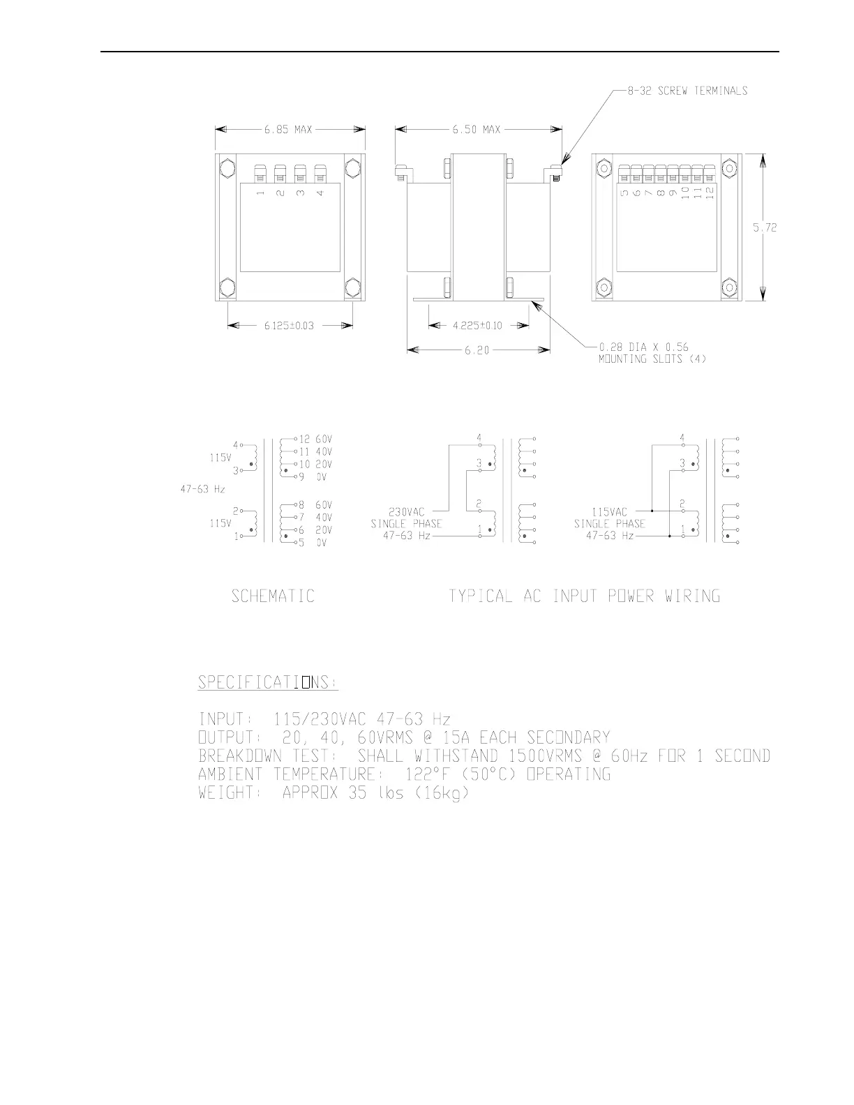 Electro-Craft MAX-430 - 1.8 kVA Transformer Specifications