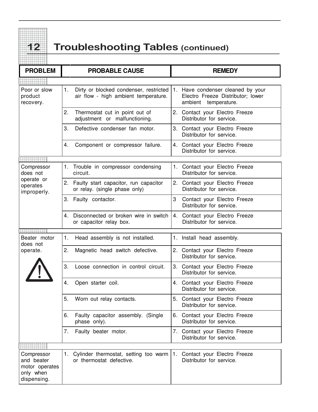 7. Faulty beater motor. 7. Contact your Electro Freeze