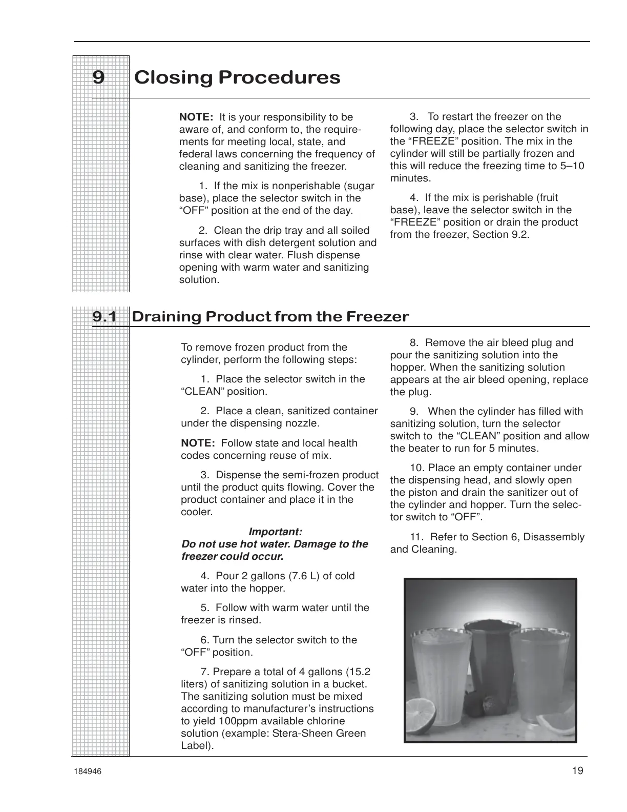 9.1 Draining Product from the Freezer