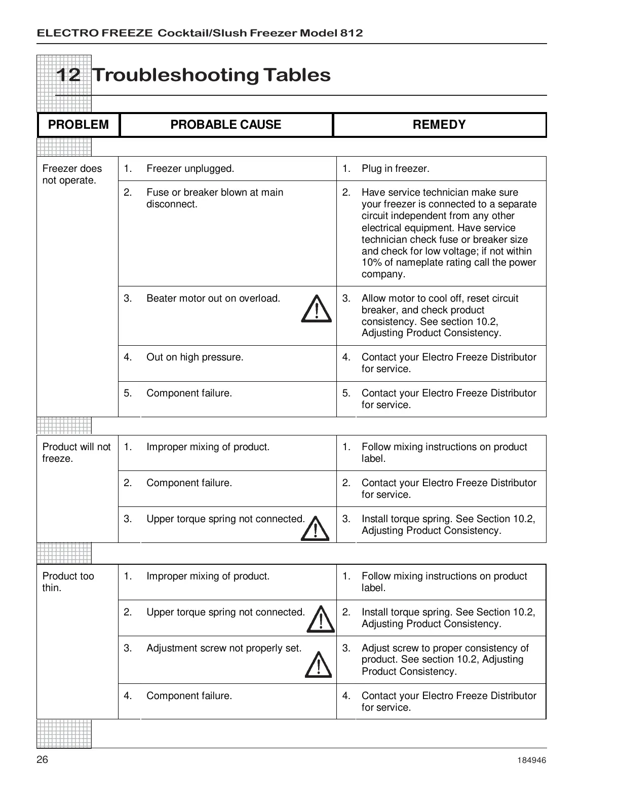 5. Component failure. 5. Contact your Electro Freeze Distributor