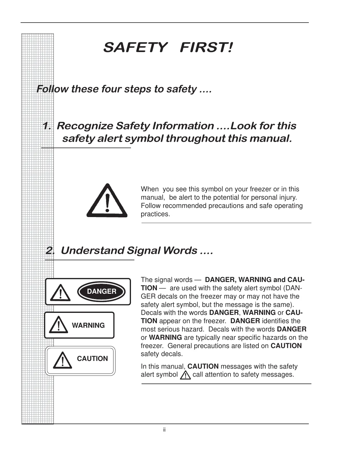 The signal words ā DANGER, WARNING and CAU-