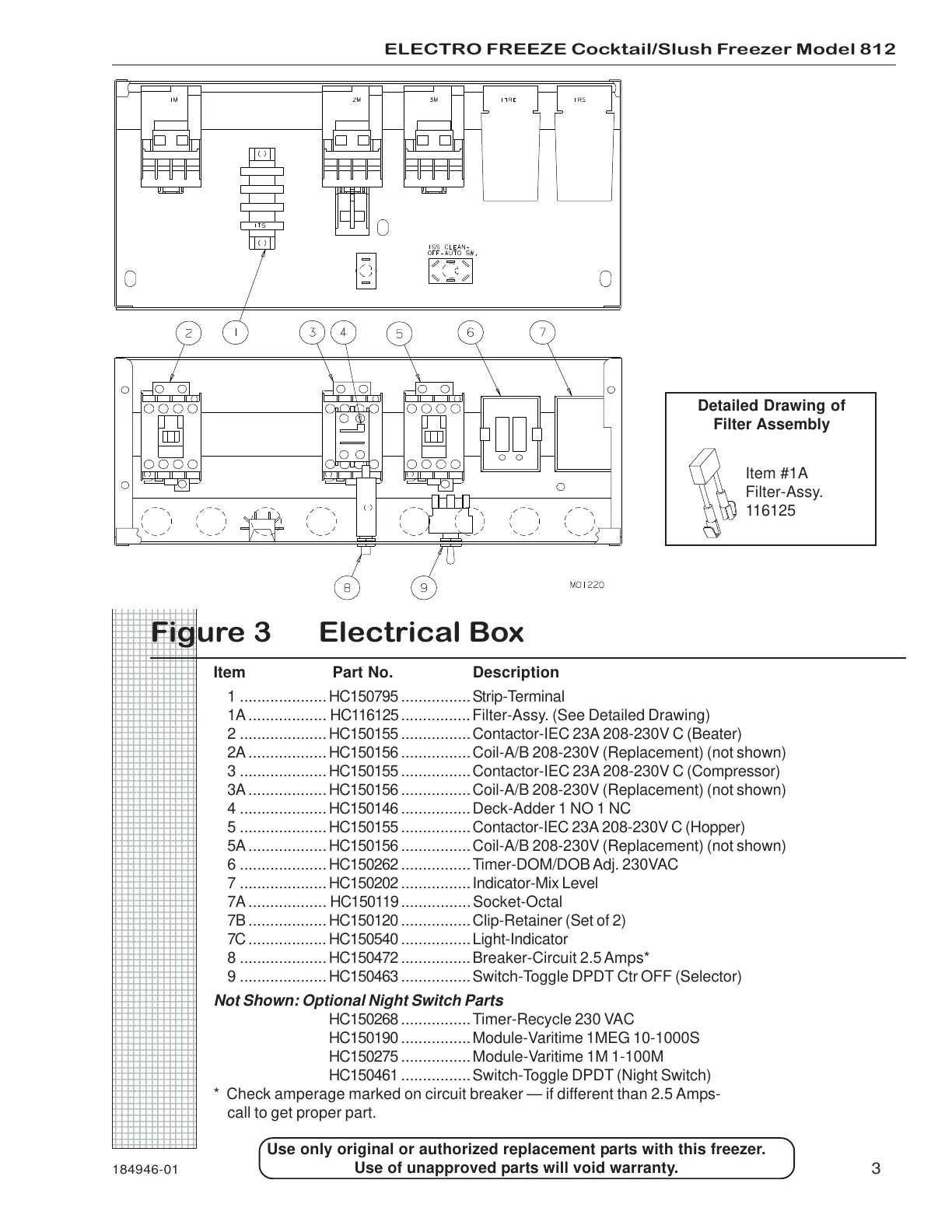 3A..................HC150156 ................Coil-A/B 208-230V (Replacement) (not shown)