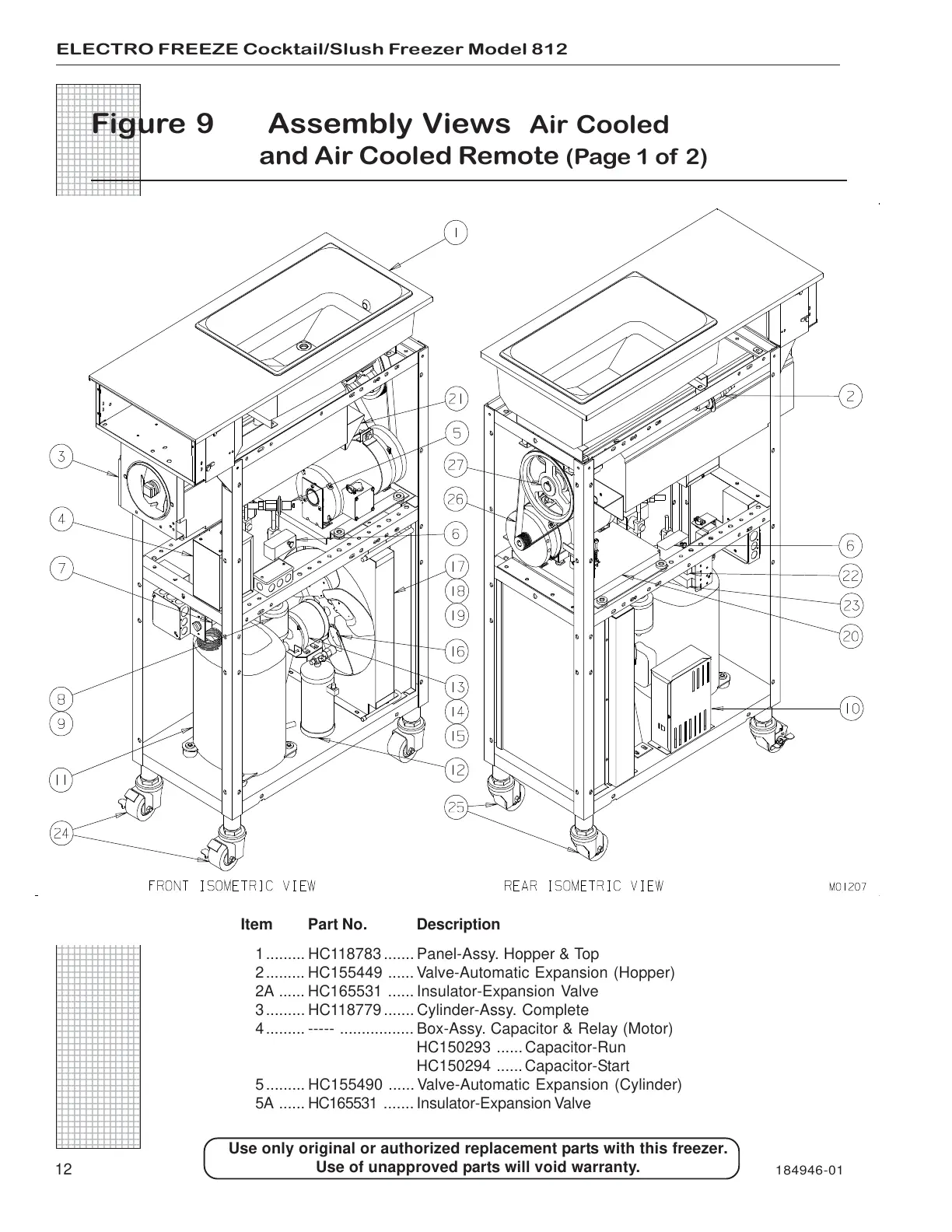 Use only original or authorized replacement parts with this freezer.