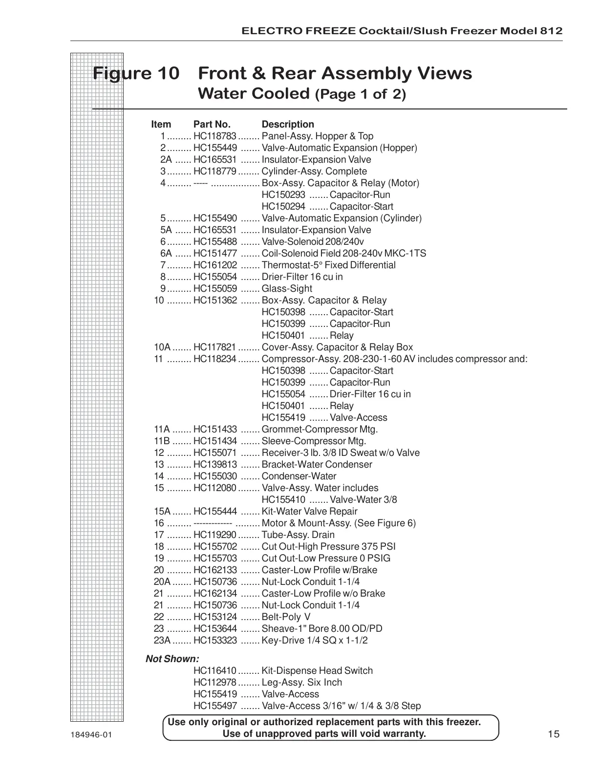 15 ......... HC112080 ........ Valve-Assy. Water includes