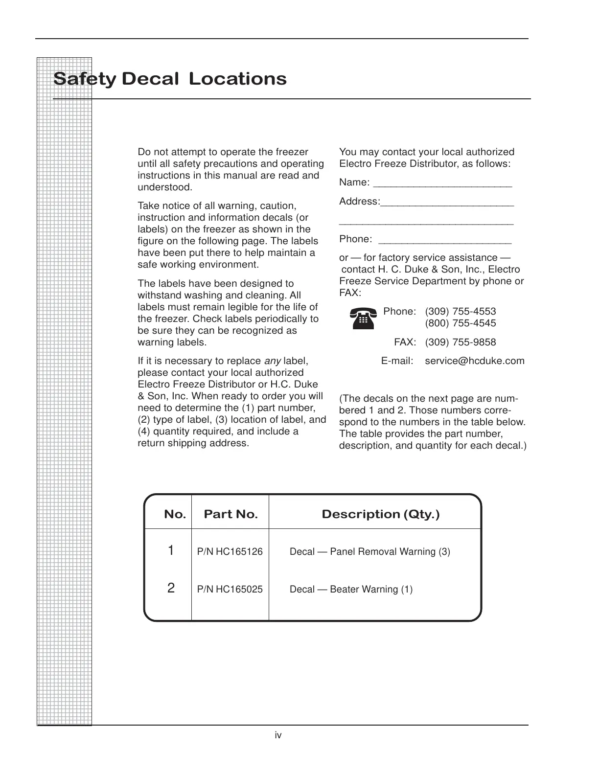 Electro Freeze Distributor or H.C. Duke