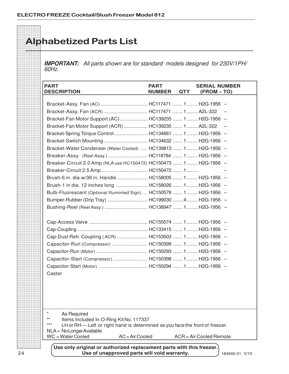 Bumper-Rubber (Drip Tray) ............................. HC199030 ....... 4........H2G-1956 –