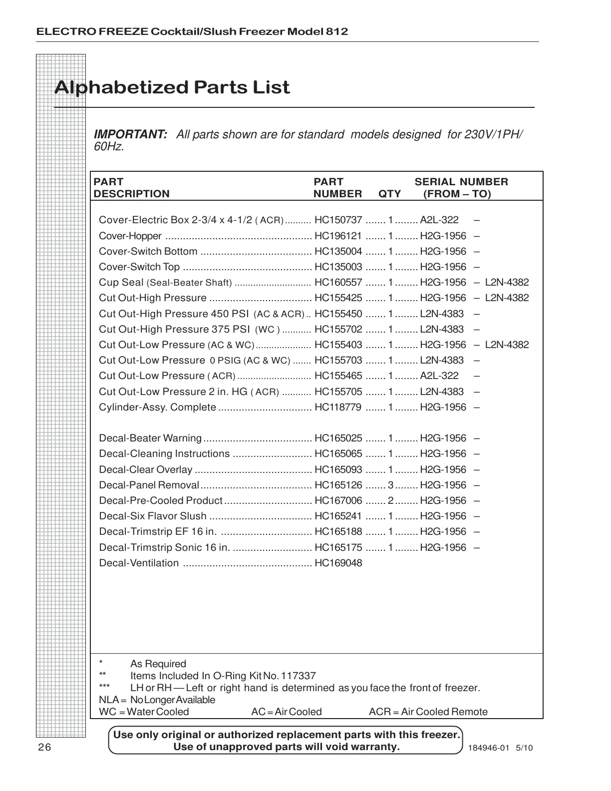 Decal-Pre-Cooled Product.............................. HC167006 ....... 2........H2G-1956 –