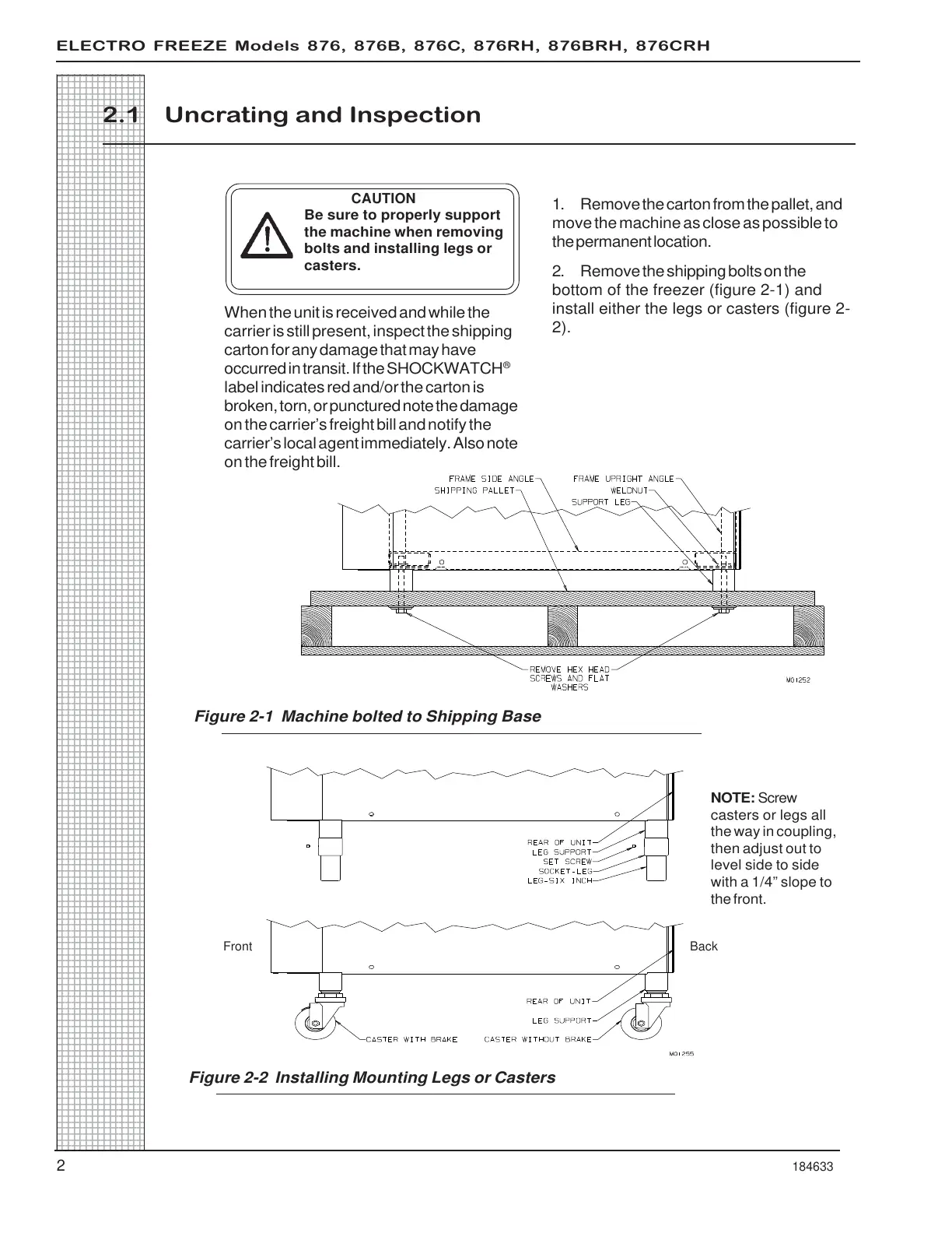 ELECTRO FREEZE Models 876, 876B, 876C, 876RH, 876BRH, 876CRH