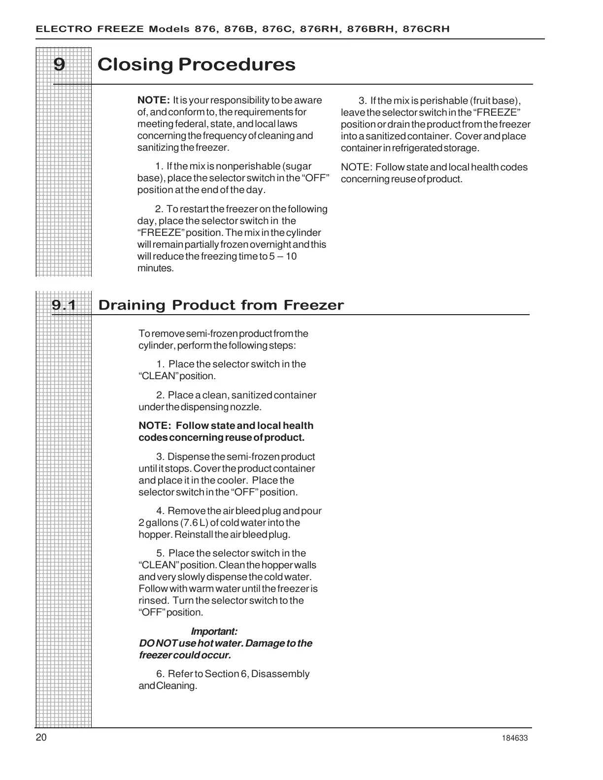 ELECTRO FREEZE Models 876, 876B, 876C, 876RH, 876BRH, 876CRH