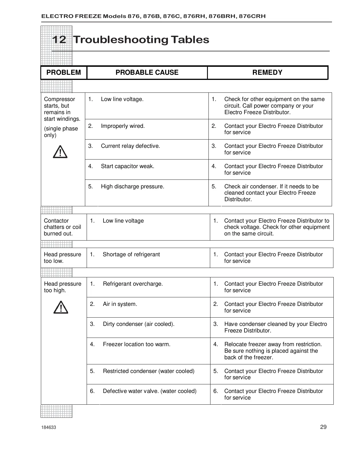 3. Current relay defective. 3. Contact your Electro Freeze Distributor