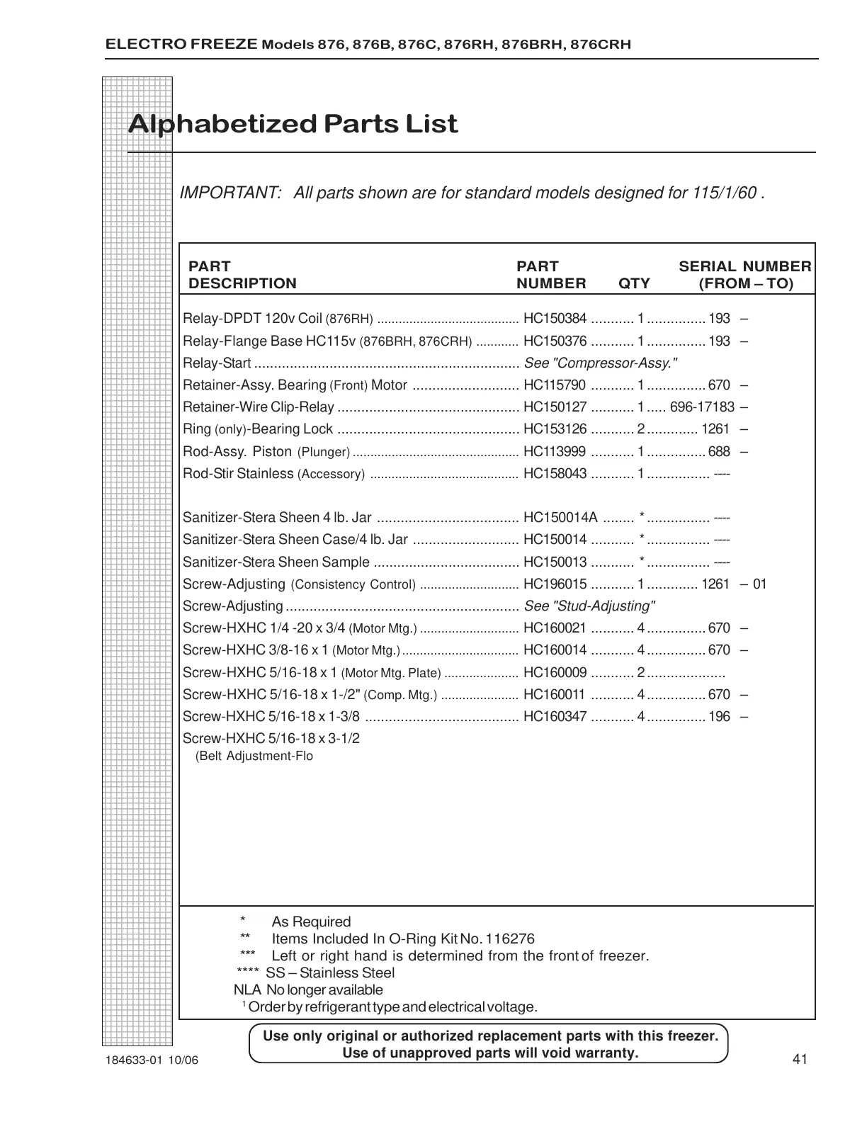 IMPORTANT: All parts shown are for standard models designed for 115/1/60 .